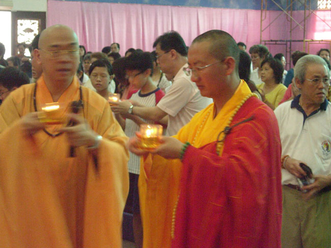崇化大和尚赴新加坡弘法与慧雄大和尚一起主持佛诞传灯法会